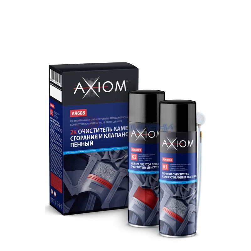 2К очиститель камер сгорания и клапанов пенный AXIOM® A9608 (раскоксовка) состоит из двух компонентов: K1 A9608K1 Пенный очиститель камер сгорания и клапанов, K2 A9608K2 Нейтрализатор пены. Очиститель двигателя.