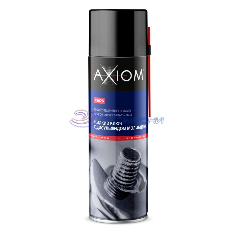 Жидкий ключ с дисульфидом молибдена AXIOM® A9628 обладает антикоррозионным действием, вытесняет влагу. Продукт специально разработан для станций технического обслуживания и производства. Может применяться для смазывания скрипящих петель, пружин, заедающих замков.