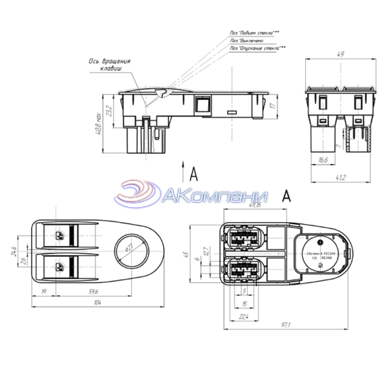 - Подключение: блок переключателей стеклоподъемников подключается колодками Ф57.830.081 или 2106-3724458