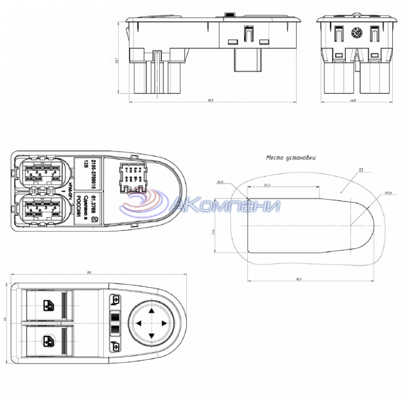 - Подключение: стеклоподъемников - колодкой Ф57.830.081, зеркал - колодкой 174044-2 AMP