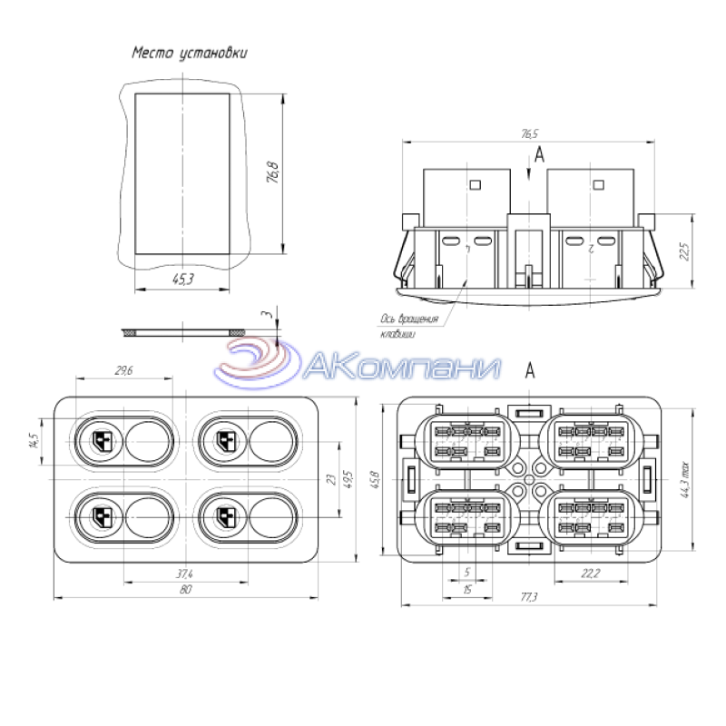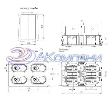 Блок управления стеклоподъемниками Lada 2110-12, 4 кнопки 12V 18.3763