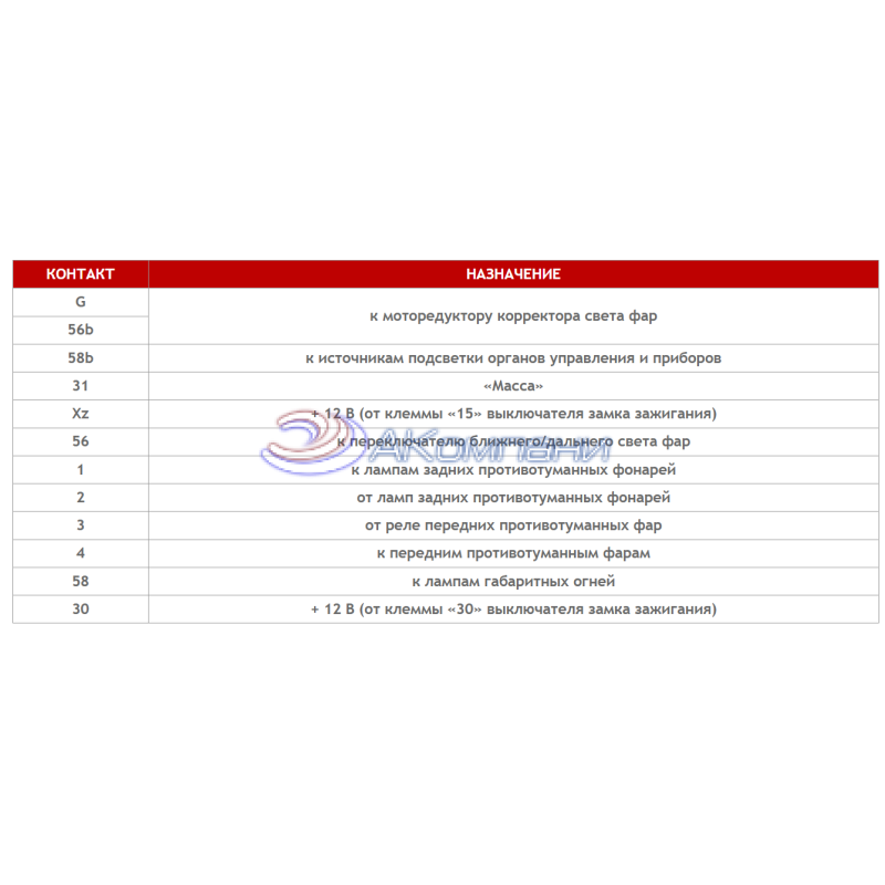 цепей управления наружным освещением, передними и задними противотуманными
