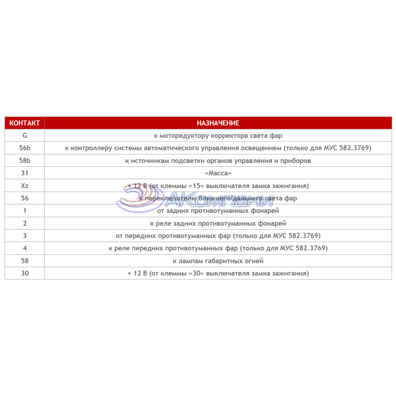 огнями, регулирования уровня освещения органов управления и приборов, управления