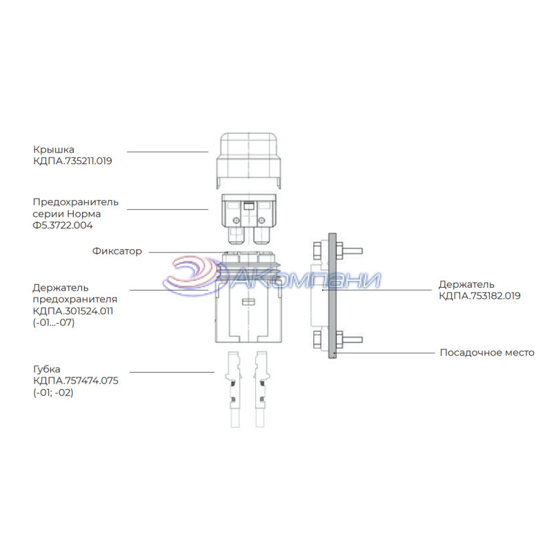 Примечание: Предохранитель серии Норма Ф5.3722.004 и губка КДПА.757474.075 в комплект поставок не входят