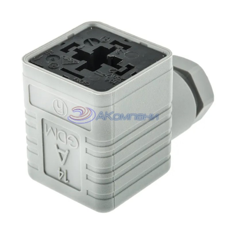 Полный ассортимент кабельных розеток, корпусов соединителей для оборудования и аксессуаров, типично применяемых с электромагнитными клапанами на пневматическом и гидравлическом оборудовании. Внутренний соединитель может поворачиваться с шагом 90°, что позволяет позиционировать кабельный ввод во всех четырех направлениях. Материал корпуса — стекловолокнистый нейлон, обеспечивающий ударопрочность.