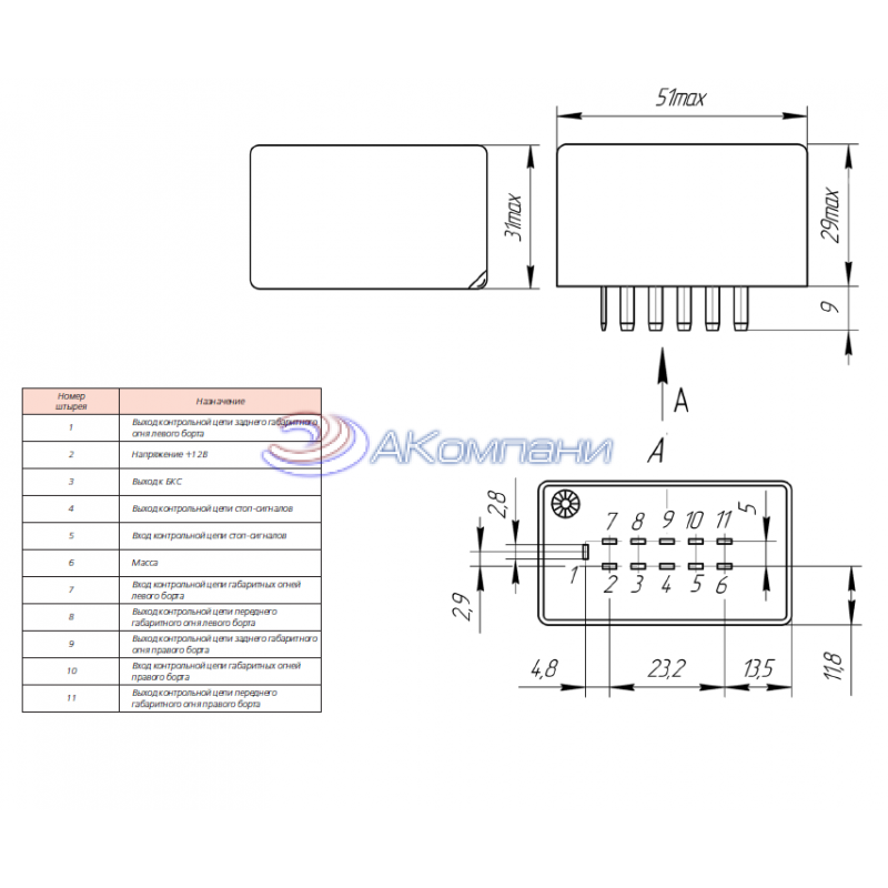 - Реле контроля исправности ламп ВАЗ-2110 11 контактов 12V 4452.3747
