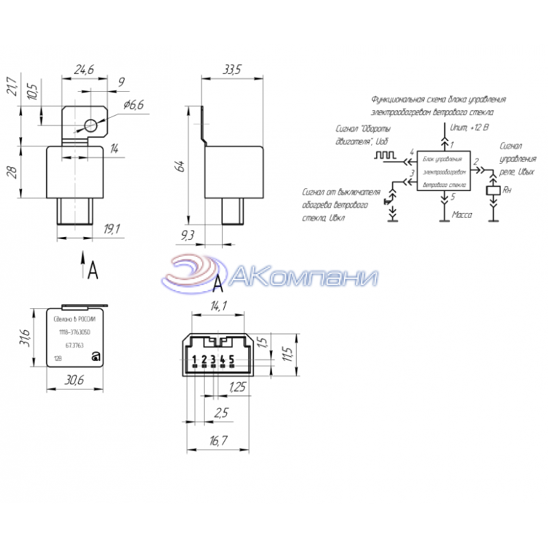 Реле обогрева ветрового стекла ВАЗ 1118 12V 67.3763