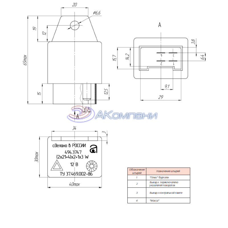 Реле поворота ВАЗ-2104-21, 1111, ГАЗ-3110, 3302 4 контакта 12V 494.3747