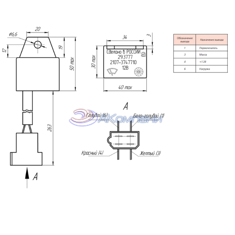 - Номинальное напряжение: 12ВПодключение: колодка 502604 и штыри