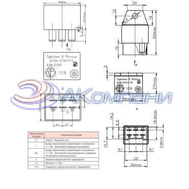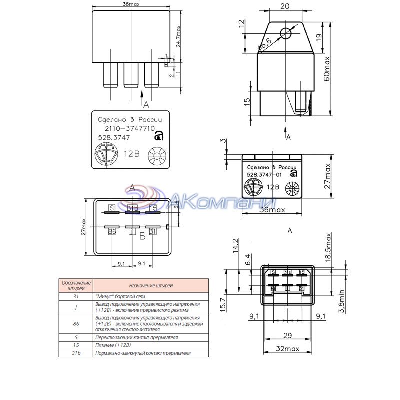 Реле стеклоочистителя ВАЗ-2108, М-2141 6 контактов 12V 528.3747