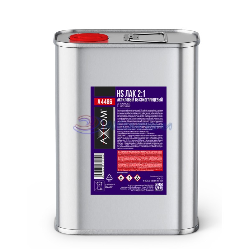 Высокоглянцевый профессиональный 1,5 слойный акриловый лак AXIOM® A4486 с высоким сухим остатком предназначен для получения финишного покрытия при ремонтной окраске базовыми эмалями кузова и других деталей автомобиля.