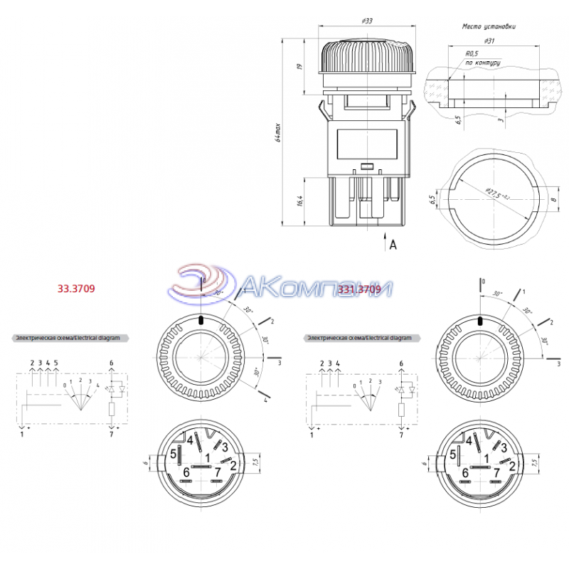 Кнопка переключателя отопителя Lada Granta ФЛ 12V (8450100894) 331.3769