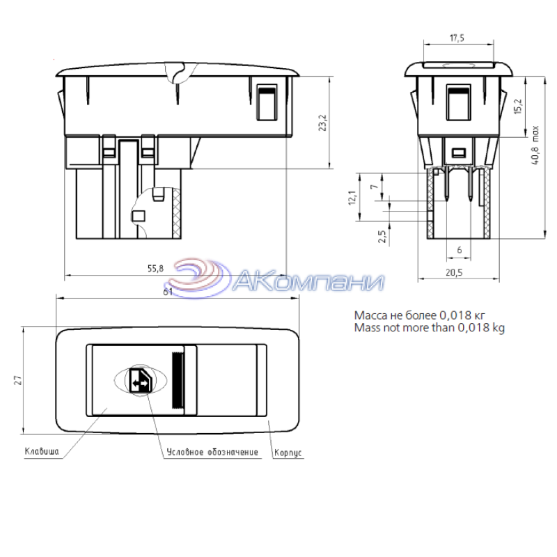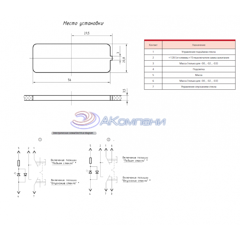 Кнопка переключателя стеклоподъемника Lada Калина, Lada Гранта 24V 921.3709-02