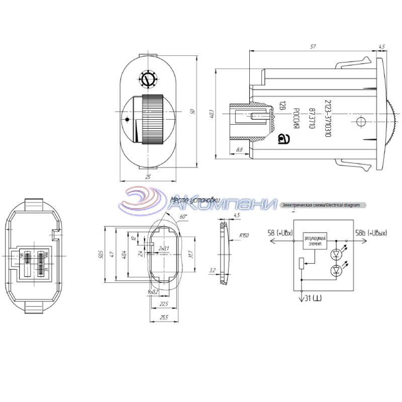 Кнопка переключателя освещения приборов Шевроле Нива 12V 87.3710