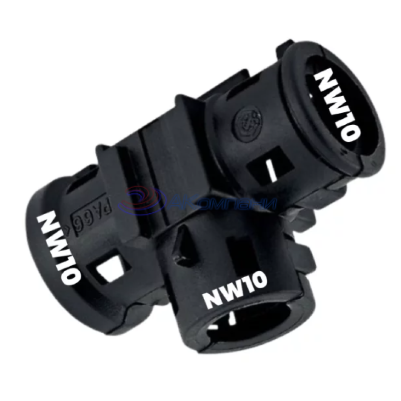 Т-образный переходник тип A 10-10-10 Schlemmer для разводки гофрированных труб. Универсальный адаптер позволяет соединить три типа гофры разных диаметров: входы NW10, выход NW10.