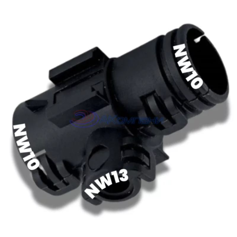 Т-образный переходник тип C 10-13-10 Schlemmer для разводки гофрированных труб. Универсальный адаптер позволяет соединить три типа гофры разных диаметров: входы NW10 и NW13, выход NW10.