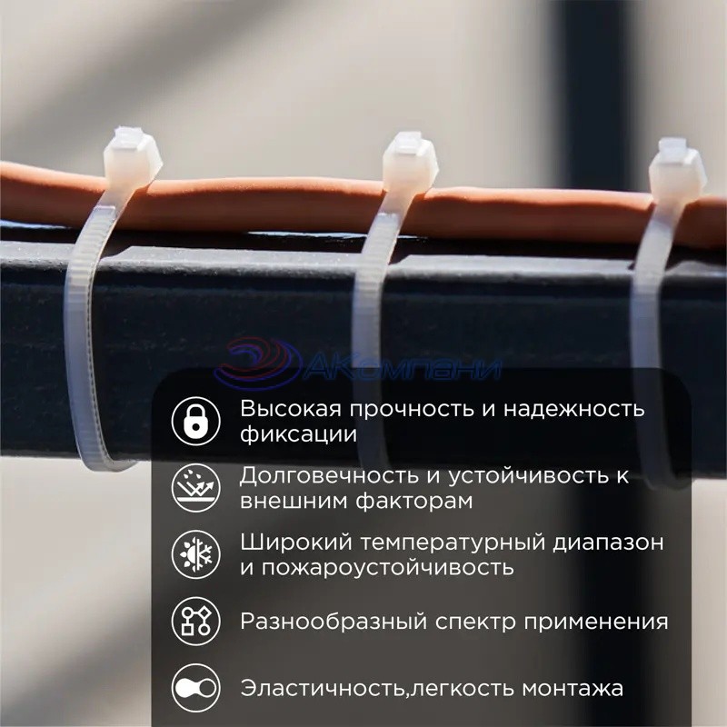 Монтаж выполняется за секунды: лента продевается через замок и затягивается. Для ускорения работ доступны инструменты REXANT (арт. 12-4524, 12-4521, 12-4541).